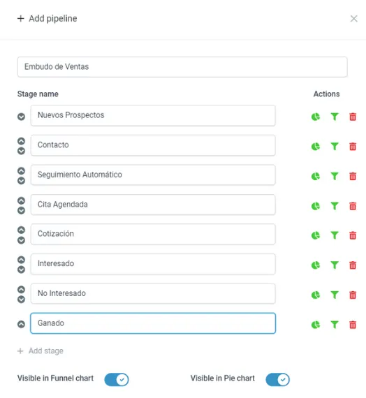 Crea embudos de venta infinitos para tu negocio, todo tu equipo de ventas puede construir su propio embudo para organizar y administrar a sus clientes.